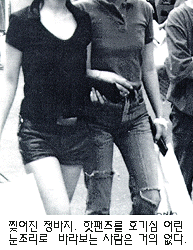 "여성들의 배꼽티, 어떻게 생각하십니까?" 얼마전 기자의 눈에 띈 PC 통신의 토론 주제였다. 질문에 대해 여전히 많은 질책과 혹평들이 있었지만 흥미로운 점도 발견 할 수 있었다. 그런 시시콜콜한 질문이 어디있냐며 따분해하는 사람부터 시작하여 보기에 즐거우면 그만이라는 이들도 상당수 있었다는 점이다. 몇 년 전 길에서 배꼽티를 입은 젊은 여성이 경범죄 운운해서 법정에까지 출두했던 일이 있었다. 그로 인해 그즈음 배꼽티 논쟁이 얼마나 뜨거웠던가를 우리는 기억할 수 있다. 배꼽티에 대해 그만큼 부정적이었던 시민 의식도 짐작할 수 있었다.